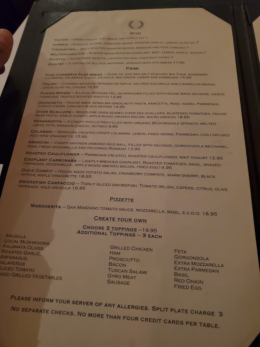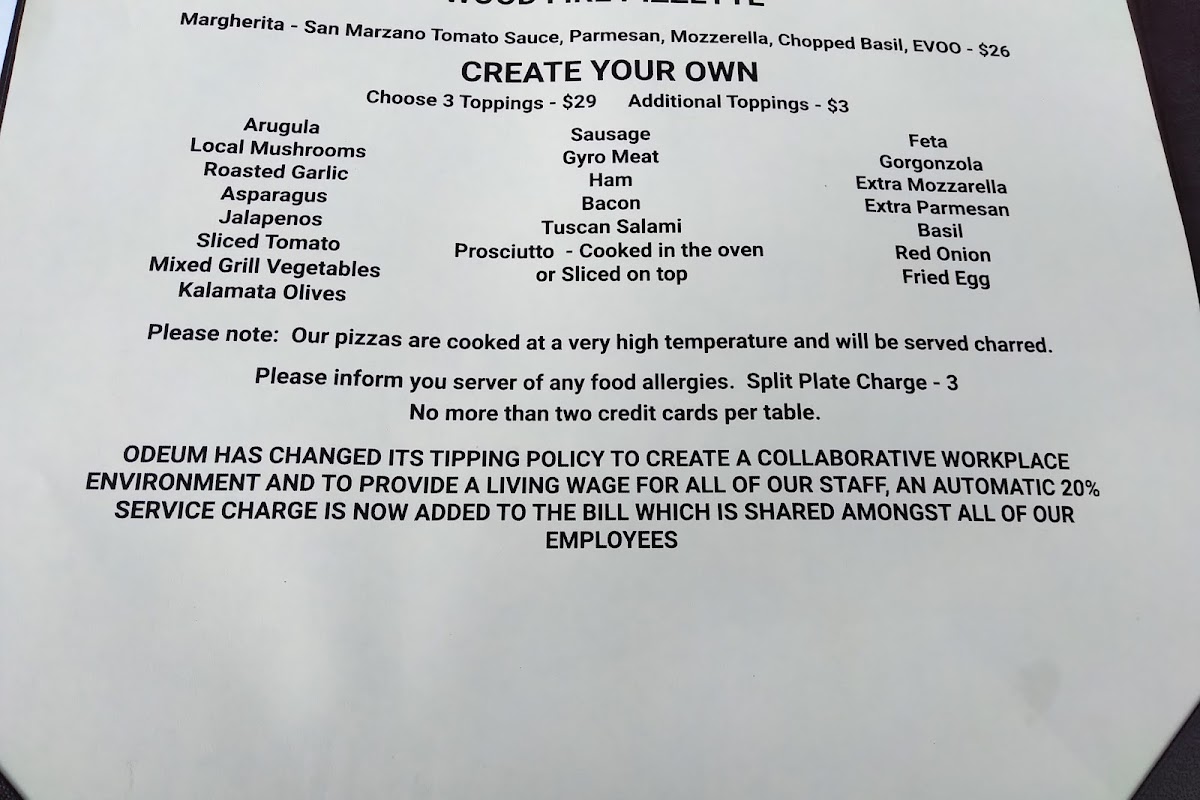 Prosciutto, Mozzarella, Parmesan, Wild Arugula, Red Onion, Tomato, Kalamata Olives, E.V.O.O.